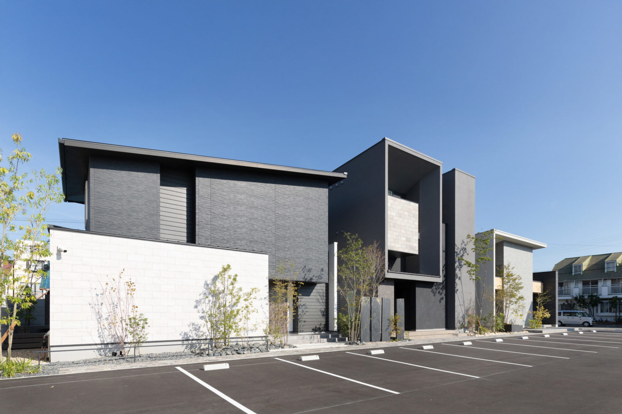 水平ラインを強調した、モノトーンモダンの洗練された外観
