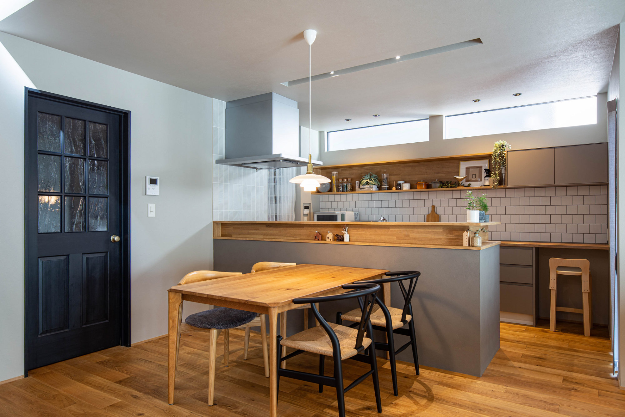 LDKは「グレー×オーク」で統一し、落ち着きのある空間にまとめました。大きい窓からは自然光をたっぷりと取り込めます。