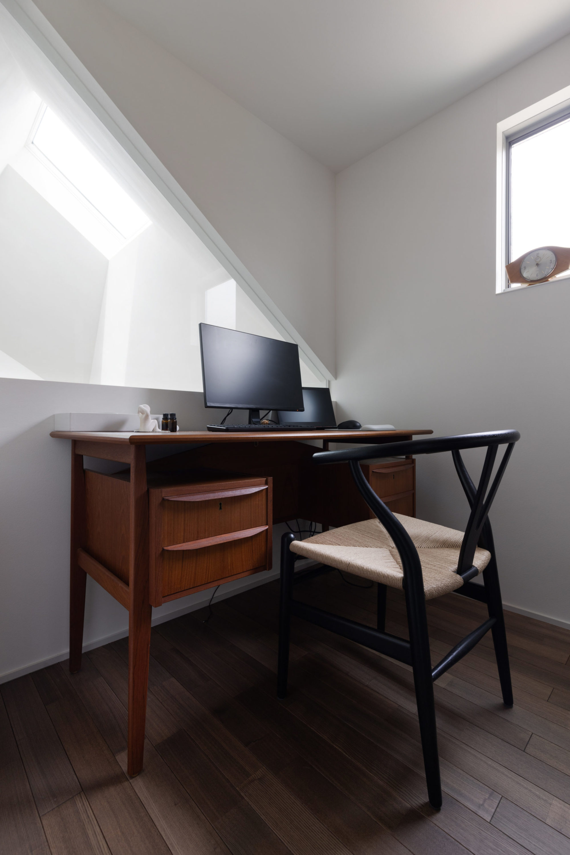 また、2階の吹き抜けに面したオープンな書斎は、階下の気配を感じながら個の時間に没頭できる特等席。落ち着いた時間を過ごせるスペースに仕上がりました。