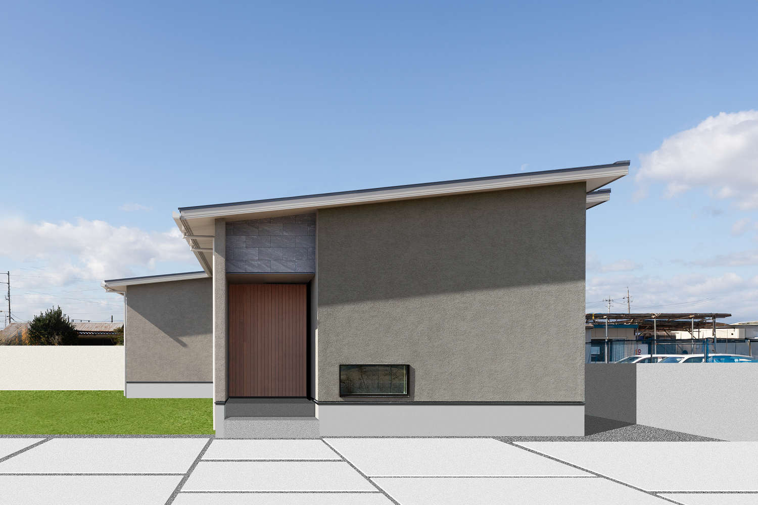外観は和モダンをテーマに、天然石調の大判タイルを採用し、落ち着きの中に上質さが際立つ佇まいに仕上げました。