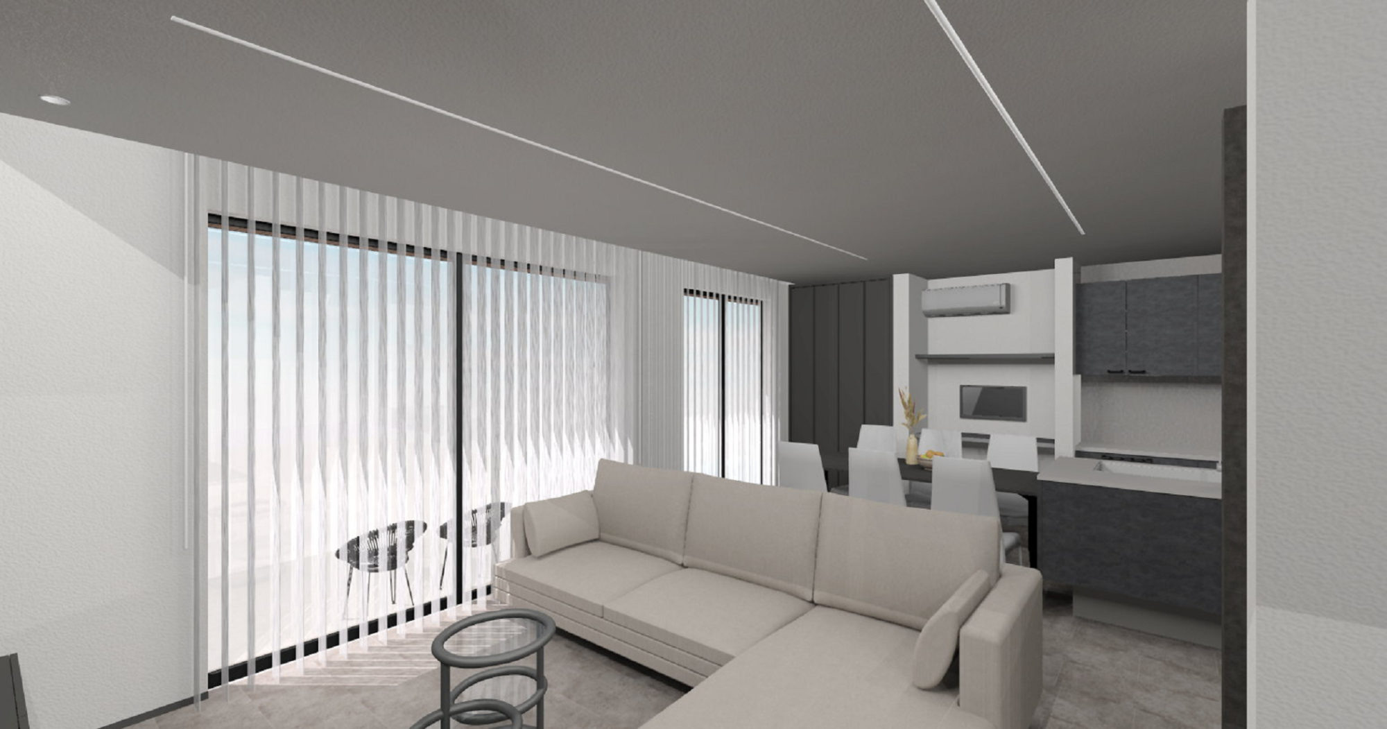 木目の使用を極力抑え、床はフロアタイルで仕上げることで、洗練されたシンプルな空間としています。