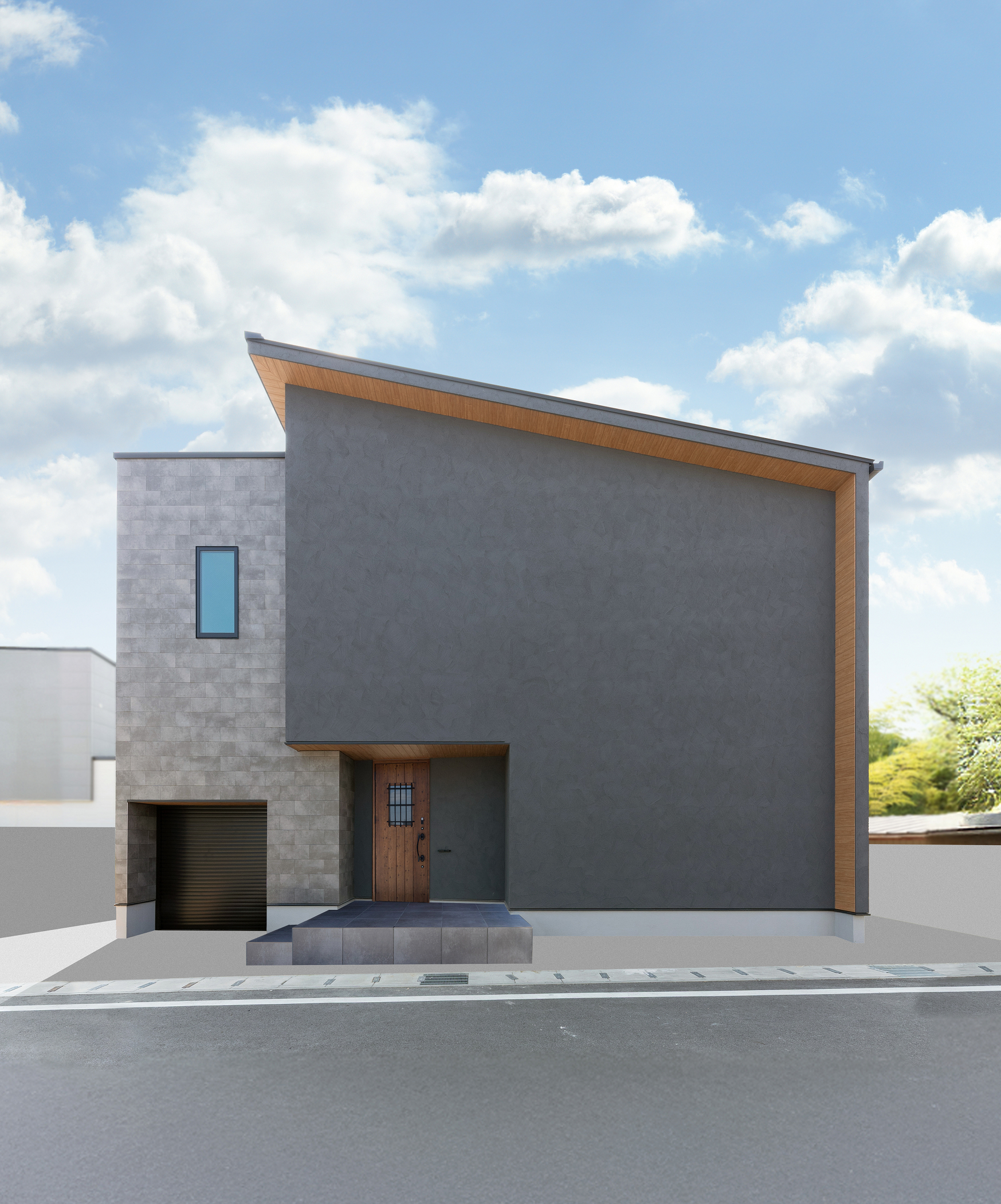外観は、ボックスと片流れを組み合わせたデザイン。