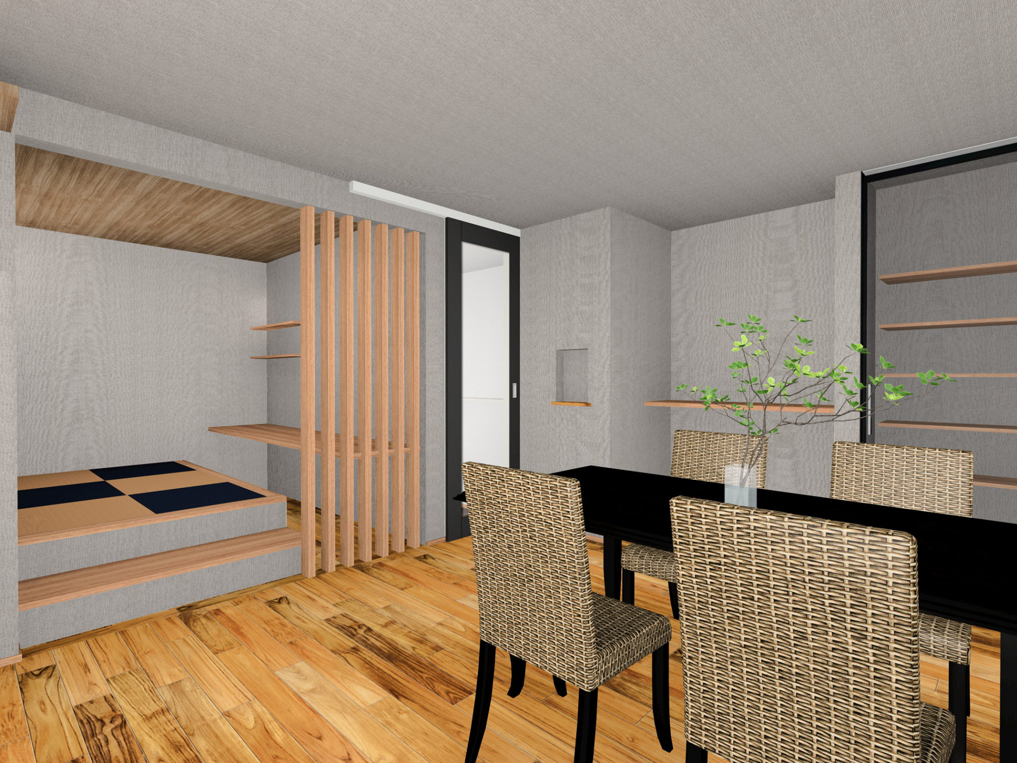 また、リビングの折り下げ天井+間接照明、小上がり和室の畳の色分け、ご家族それぞれが使える造作ロッカーなど、細部にまで工夫を凝らしています。