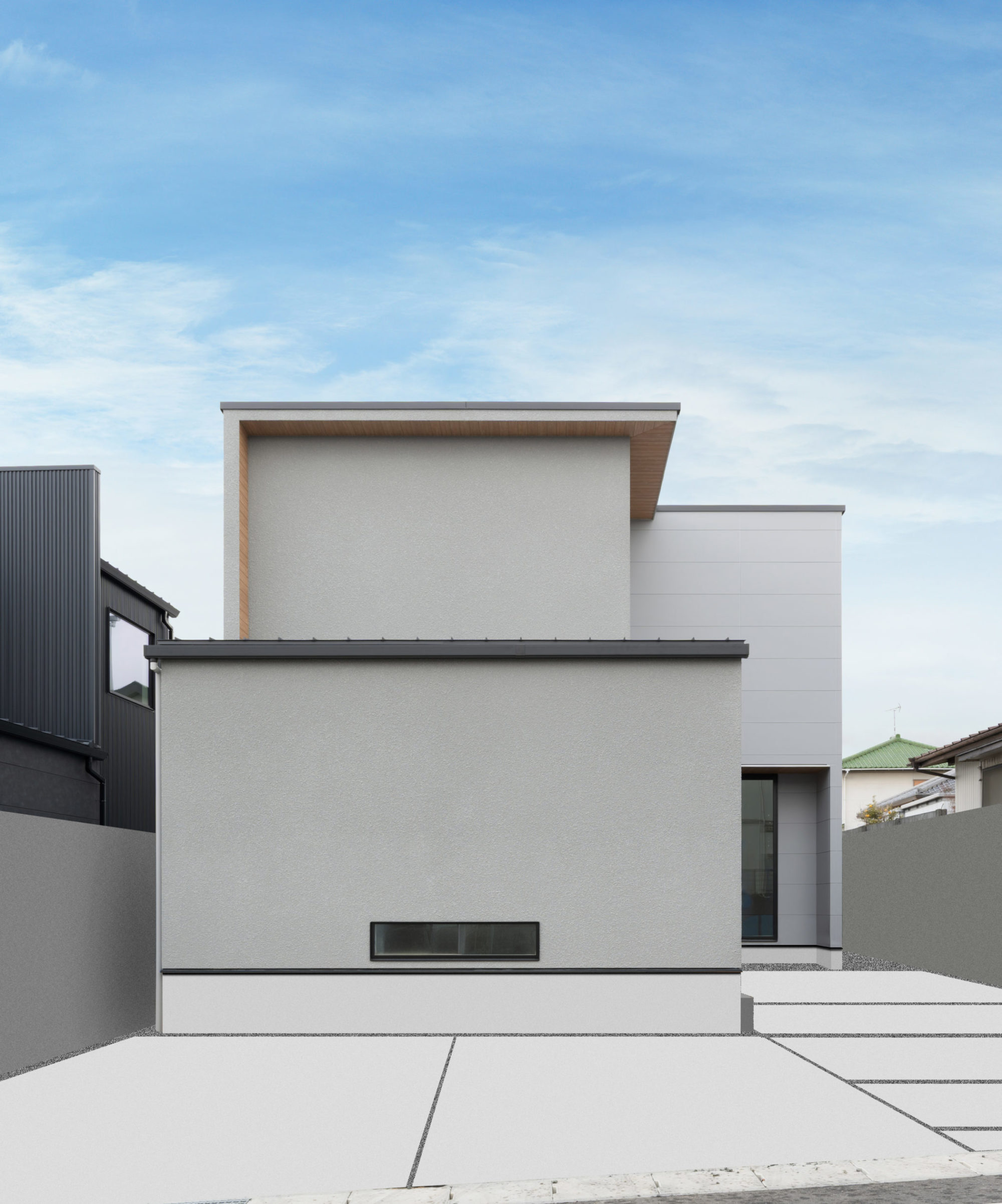 やさしいグレーの塗り壁とサイディングを組み合わせた、落ち着きのある外観が印象的な住まい。プライベート感のあるお庭を備え、内外にゆとりのある住空間としています。