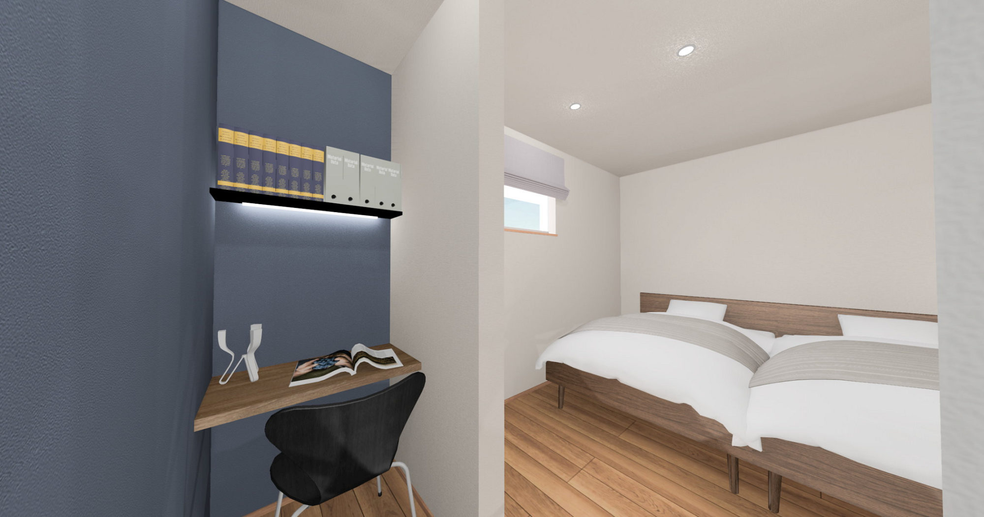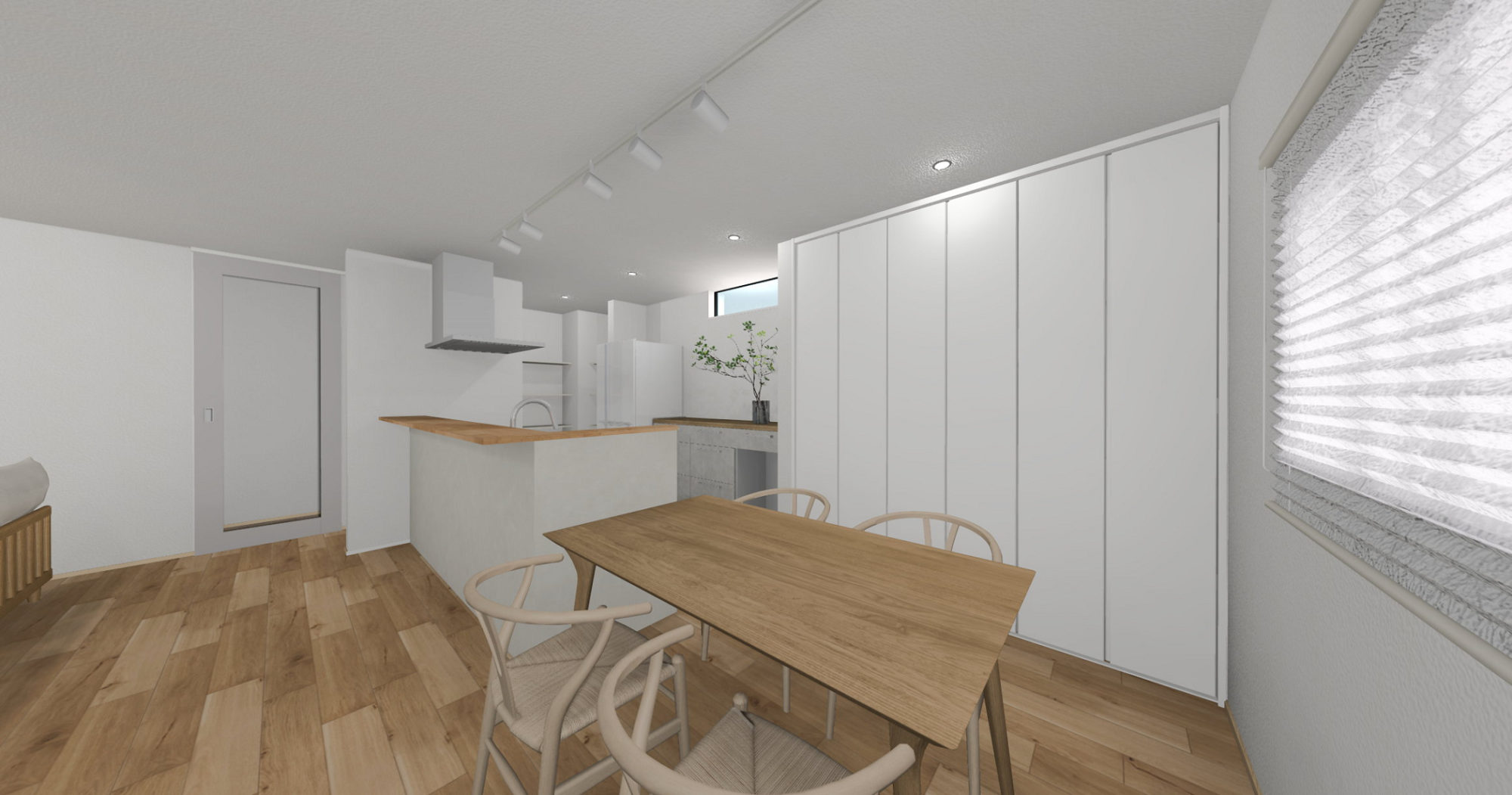 1階は、明るくシンプルな内装をベースに計画。