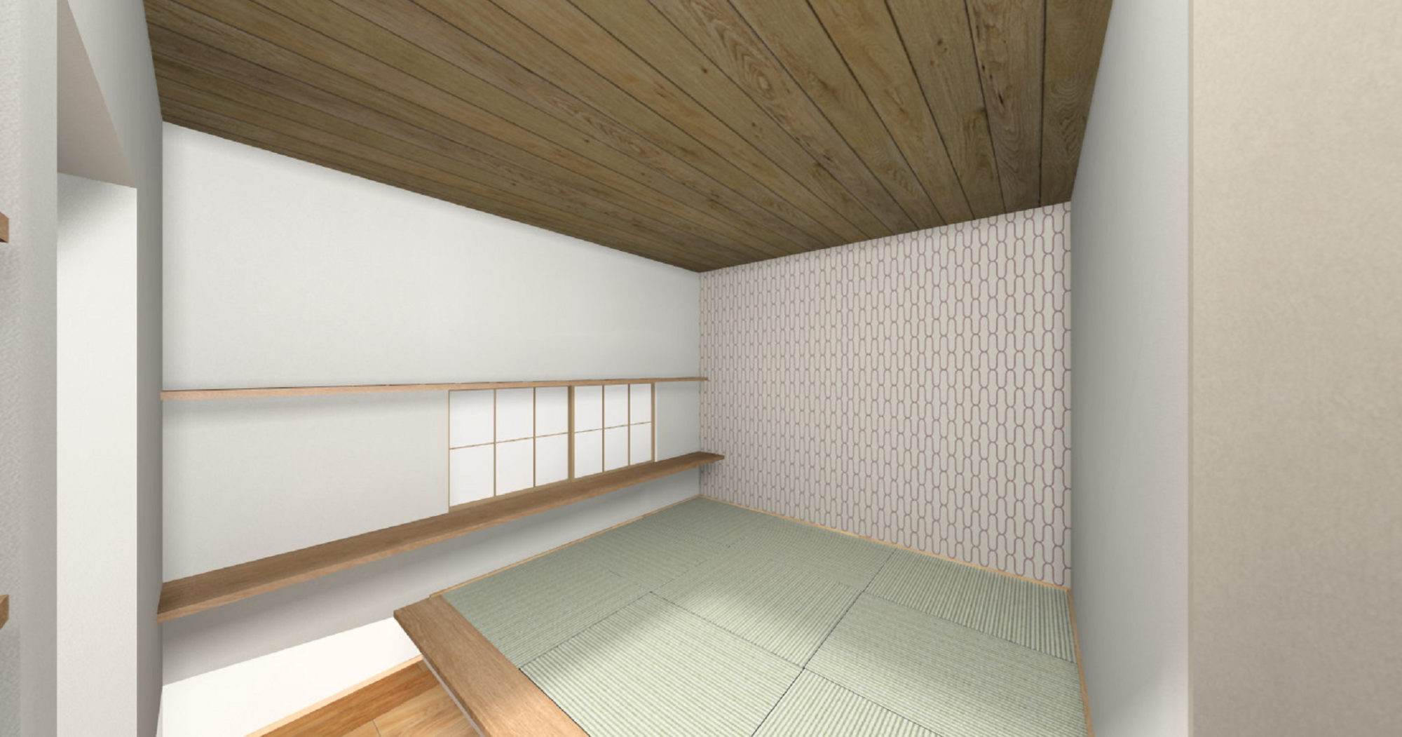 1階寝室は小上がりと羽目板をあしらい、まるで旅館のような落ち着きある空間に仕上げました。