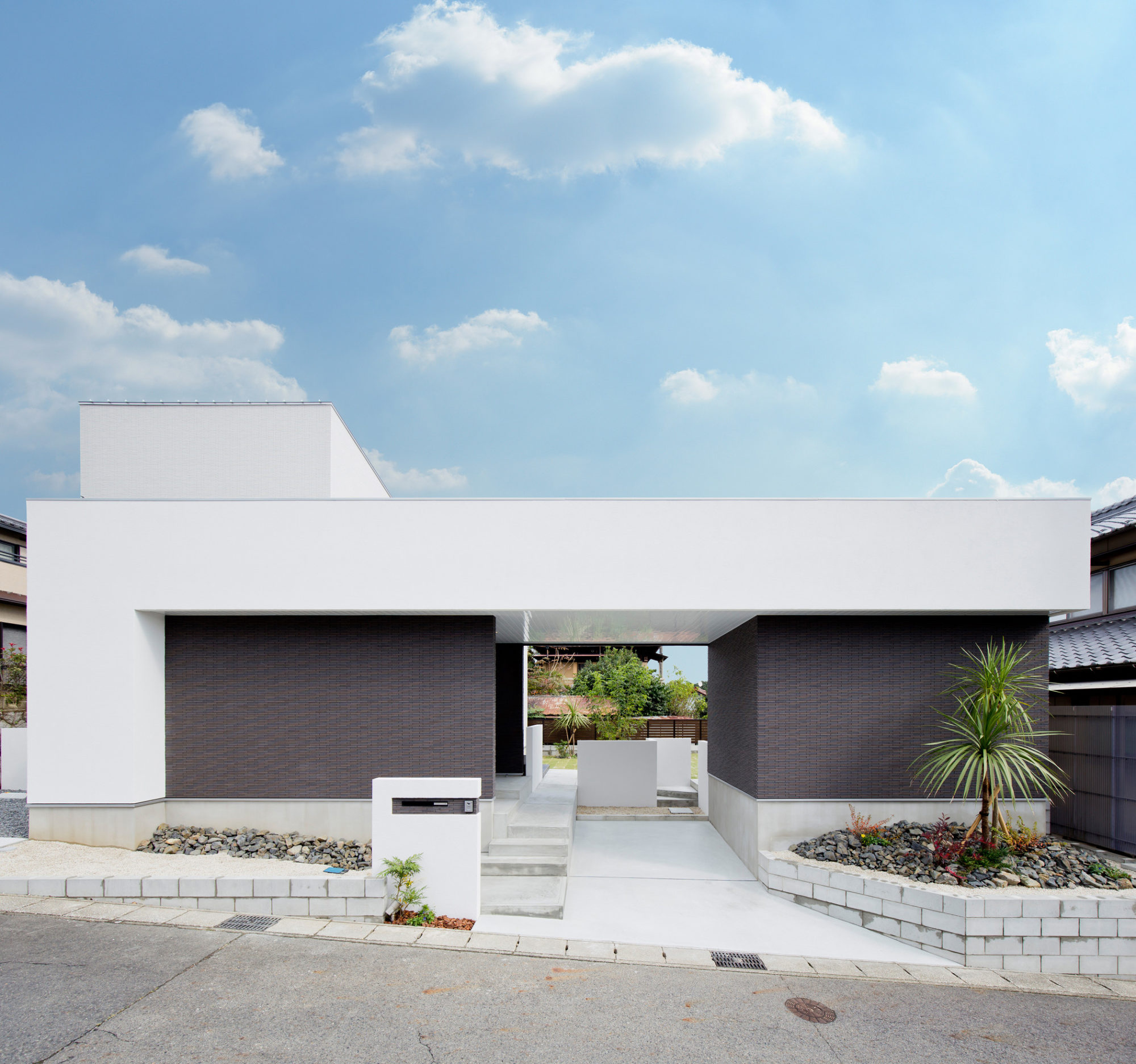 美術館のような外観が目を引く、緩やかなスキップフロアが心地良い家