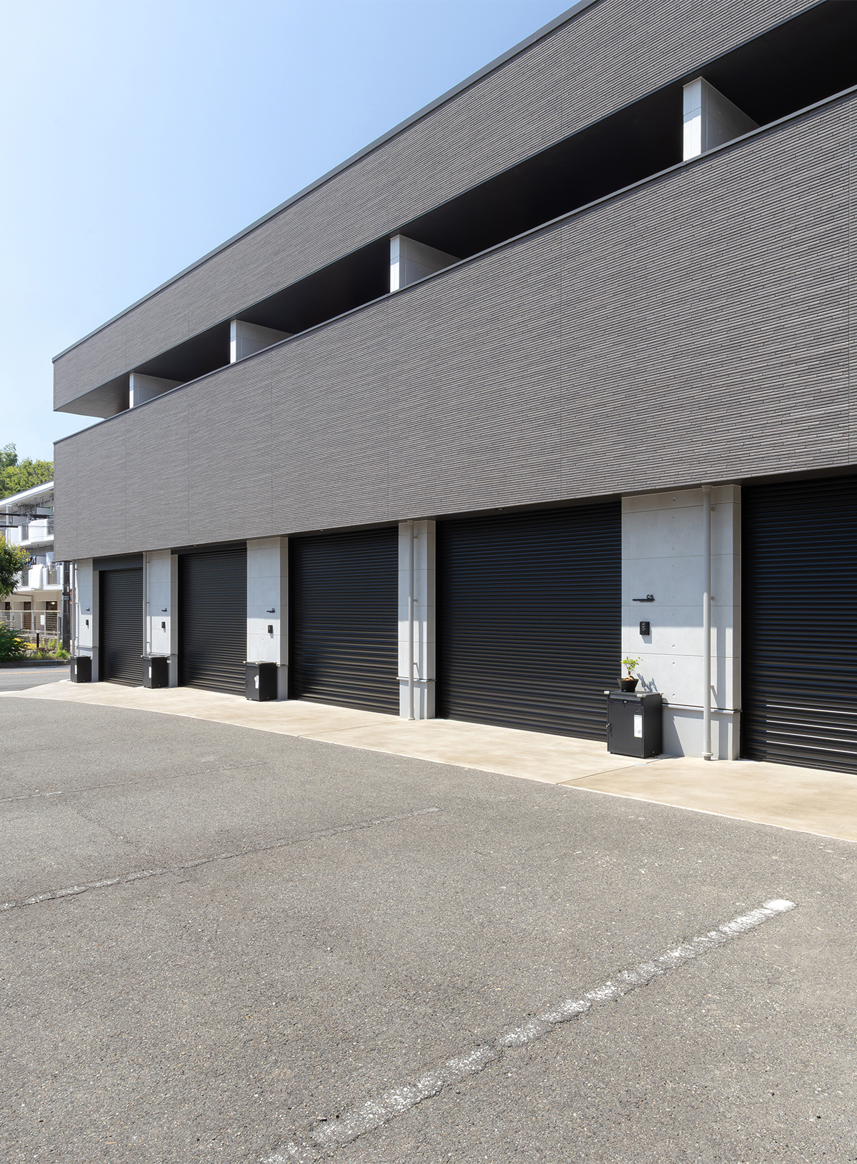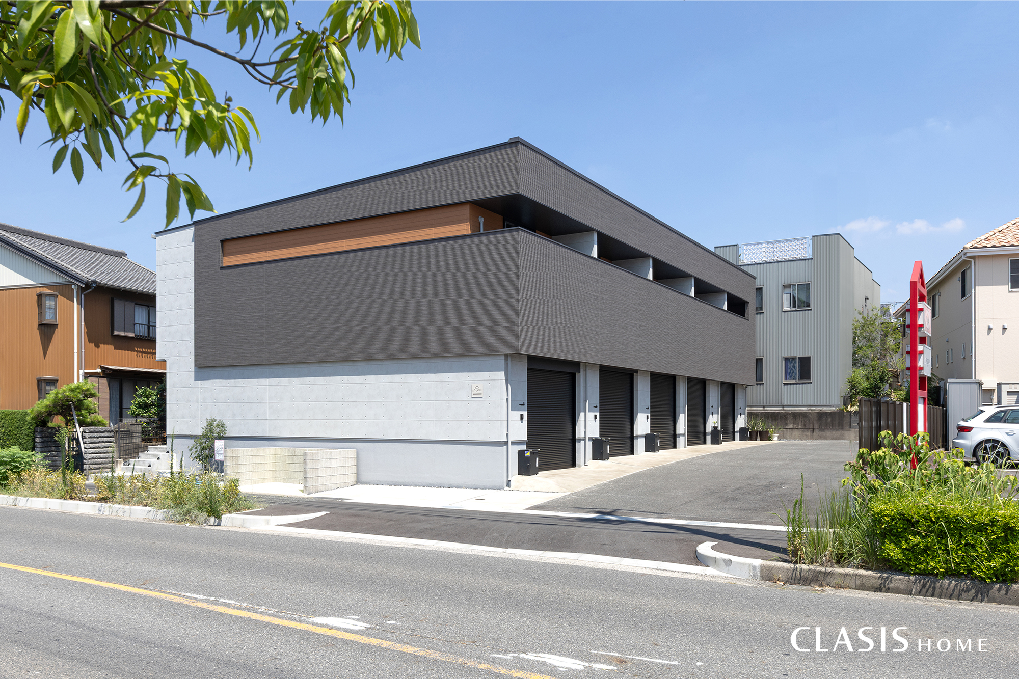 2台の車とバイクが停められる広さのあるインナーガレージが特徴の「愛車と暮らす賃貸」をコンセプトに設計された賃貸住宅。