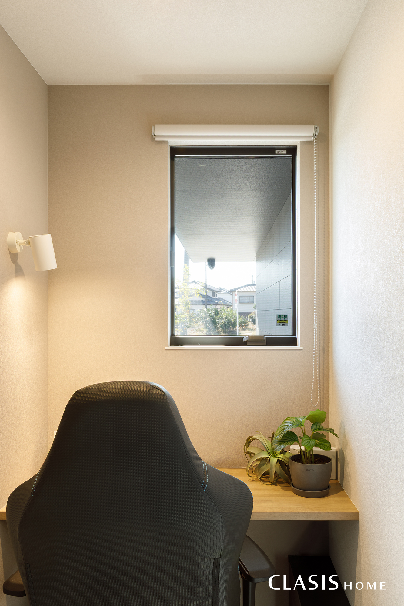 寝室の一角にもご主人様のためのお仕事スペースを用意しました。デスク前の窓からは外の様子を確認でき、閉塞感を感じさせない工夫をしています。