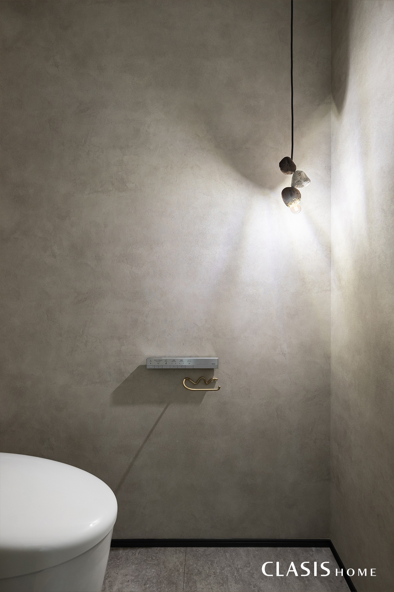 居室側トイレはイメージを変えてシンプルでかっこいい印象に。巾木にブラックを取り入れ、クールなコーディネートにしました。