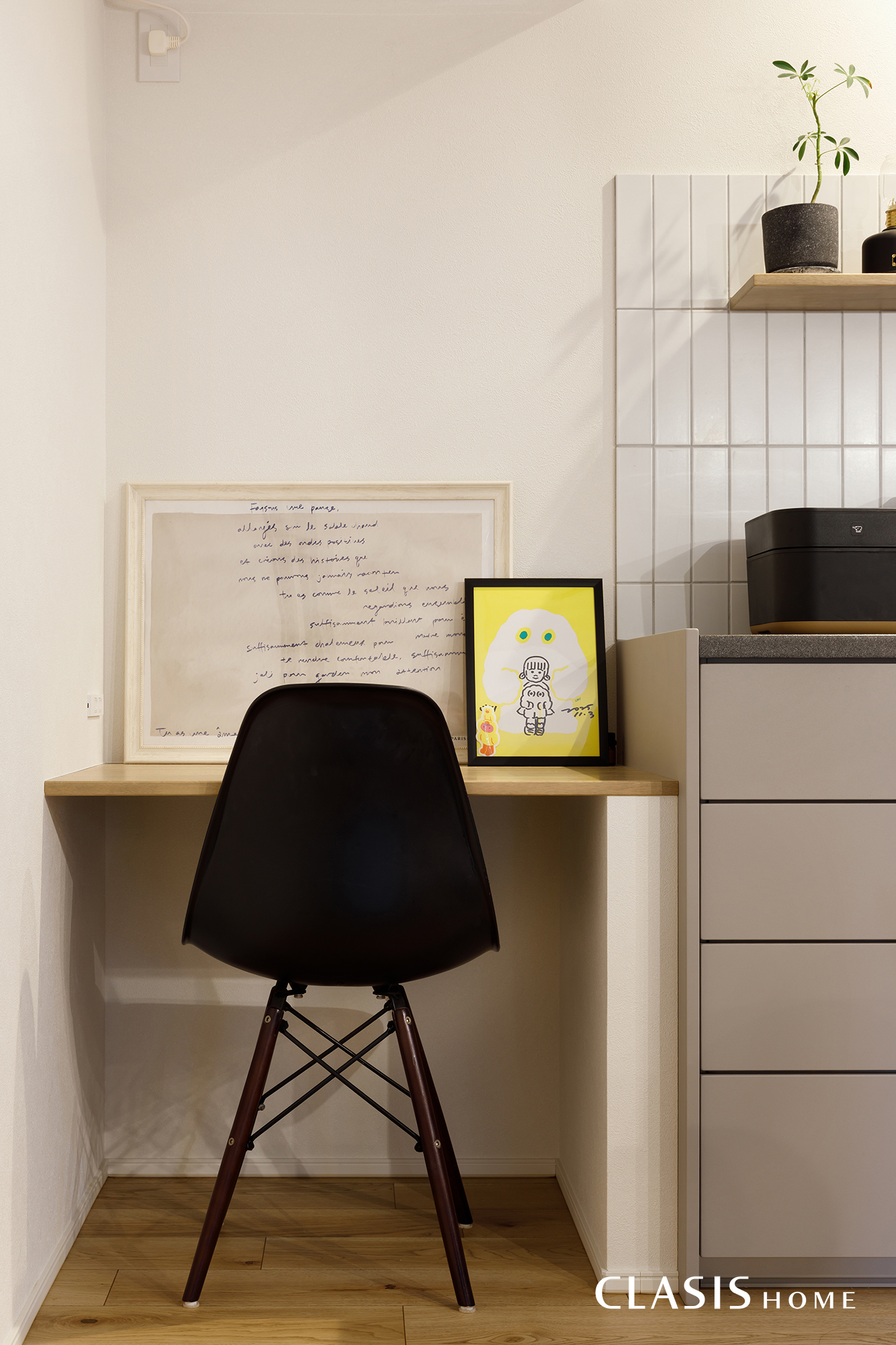 キッチン横にカウンタースペースを設けました。現在はキャンドル作りなどの趣味を楽しむ場所として、将来的にはお子さまのスタディコーナーとしても活用できるよう計画しています。