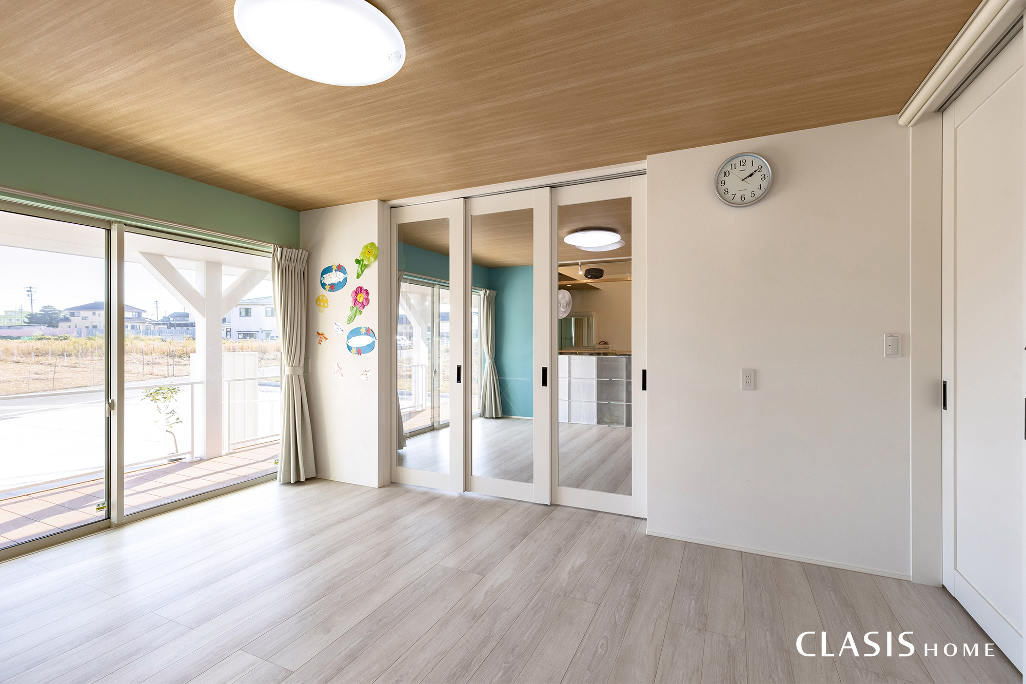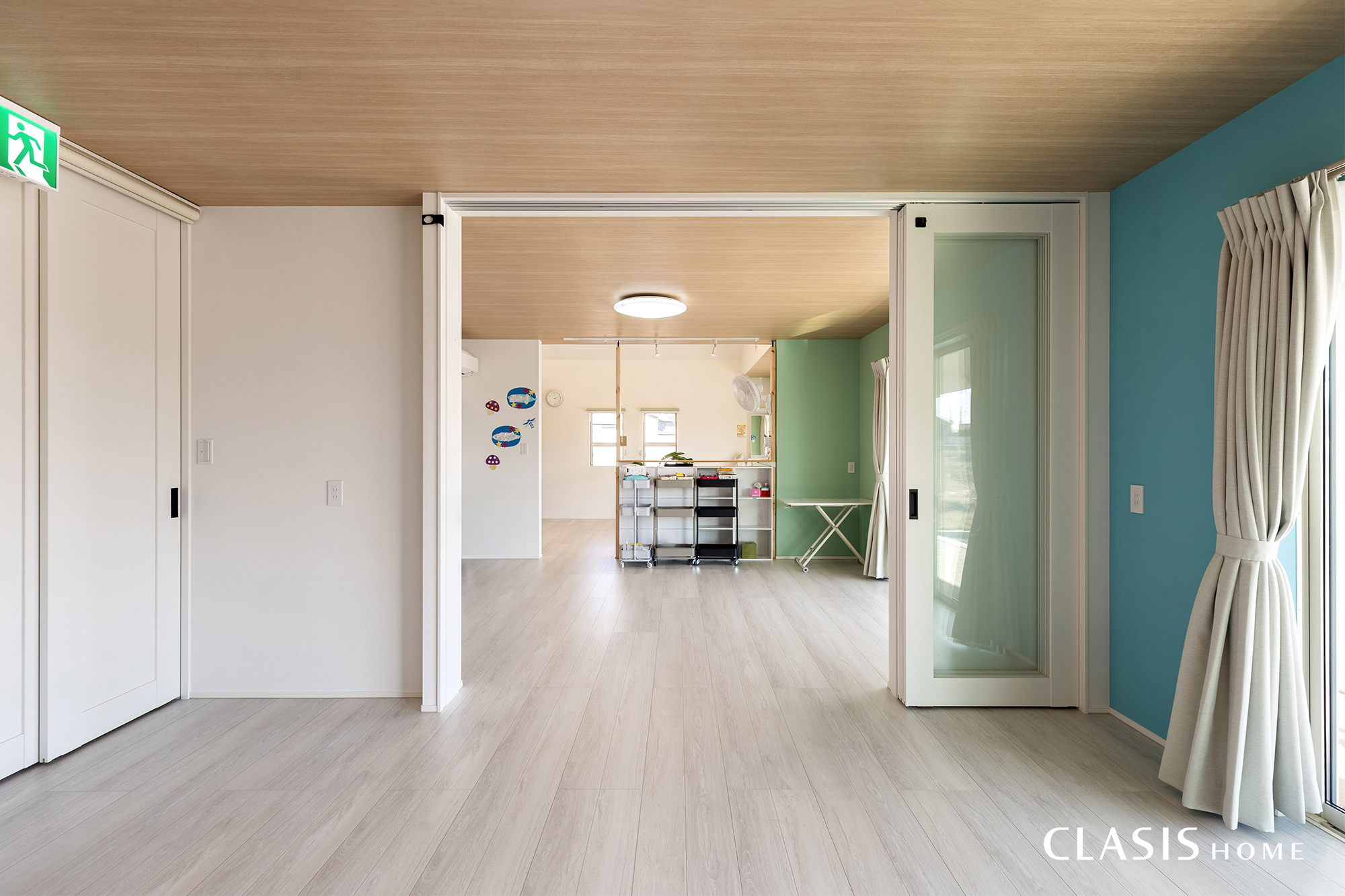 各部屋はフルオープンにできる引き込み戸で区切られているので、用途や利用人数に応じてフレキシブルに空間を切り分けられます。