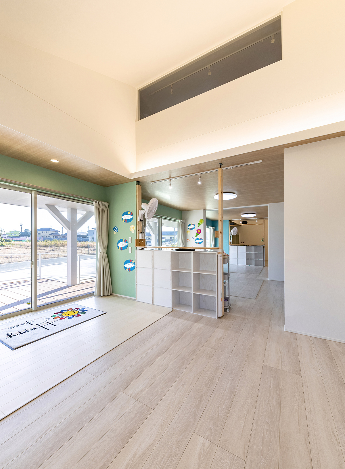 あえて介護施設らしいデザインではなく、家庭的な温かみのあるデザインにすることで、お子様や保護者の方、スタッフの方々など、すべての方々が自然と笑顔になれるような空間を目指しました。