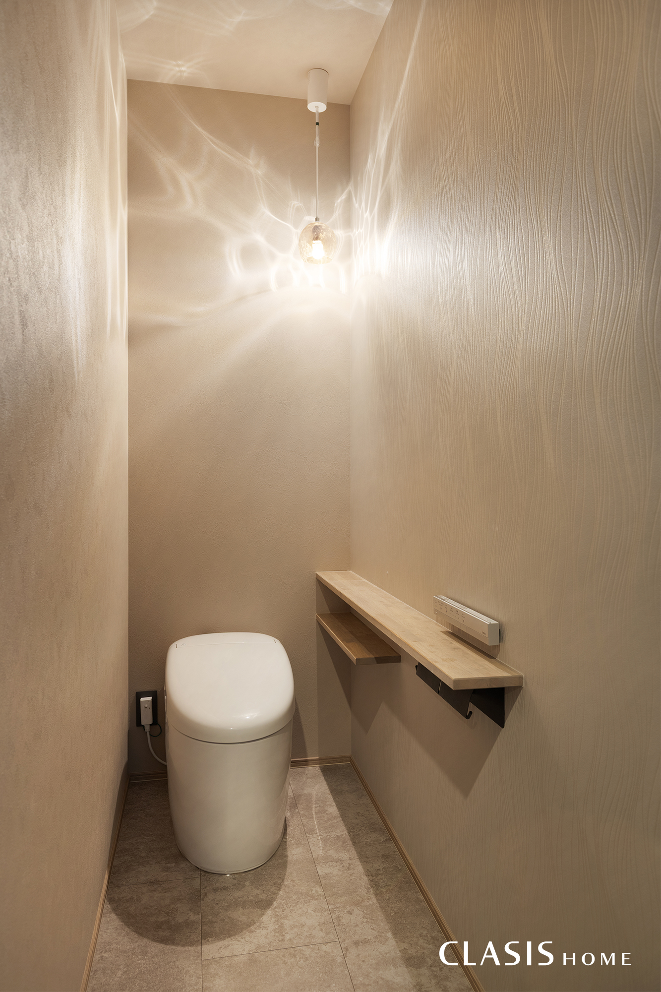 家全体の雰囲気に合わせて、シンプルなイメージにしつつもグレイッシュなカラーで温かみを加えたトイレにコーディネートしました。