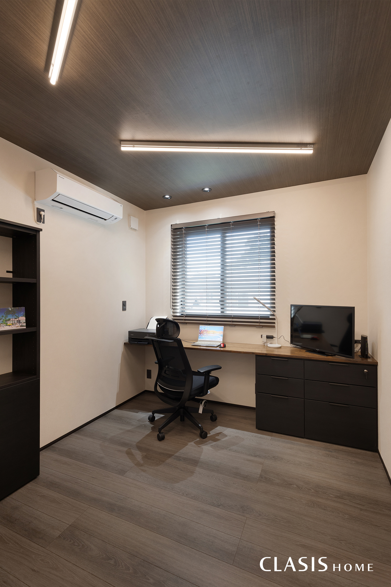 ご主人様の書斎には、ぴったりのサイズで特注された本棚や鍵付きカウンターを設置しました。