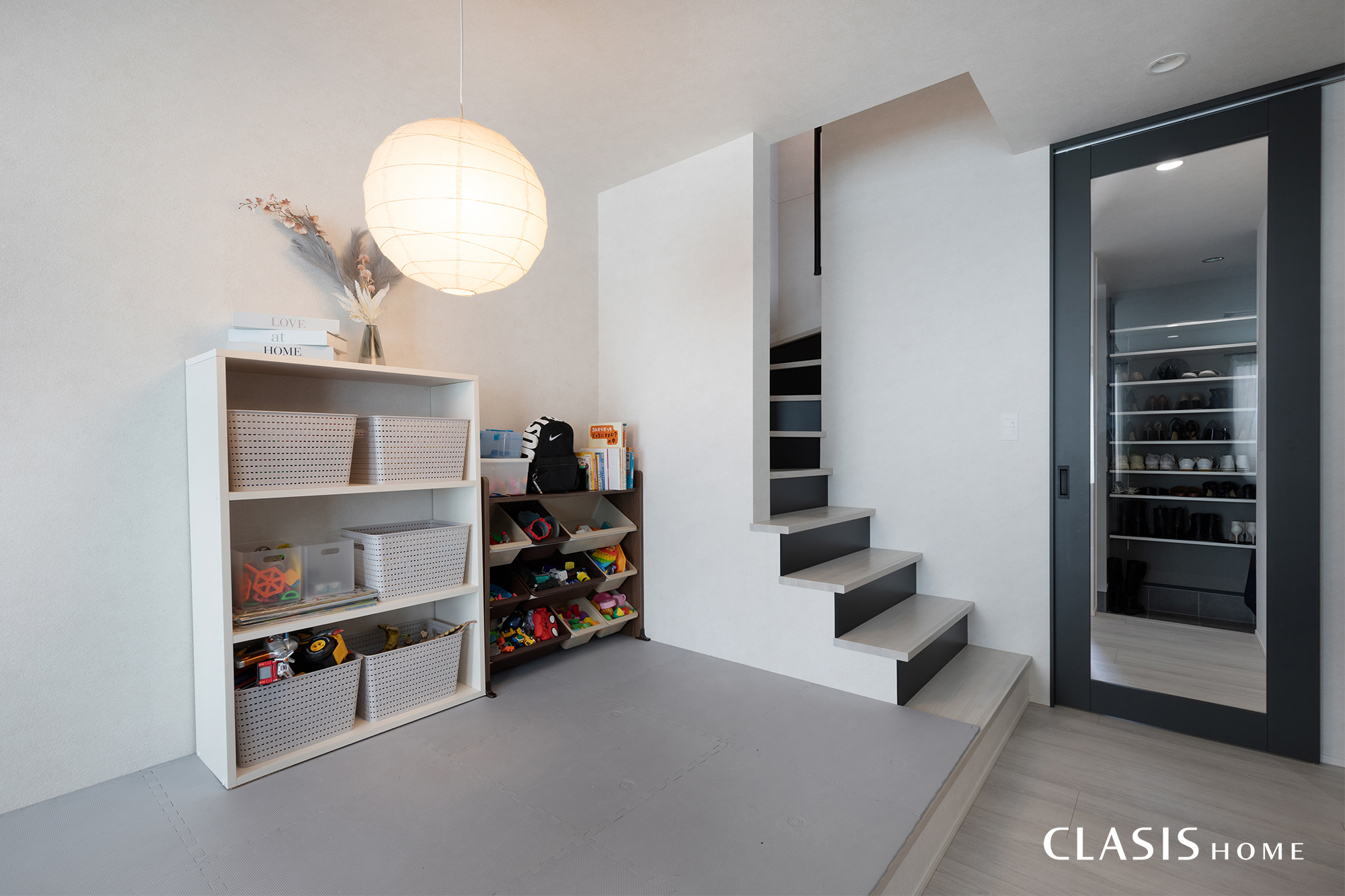 小上がり部分はキッズスペースに利用しています。お子様が自由に遊びつつ、きっちりとお片付け習慣も身につくような空間になりました。