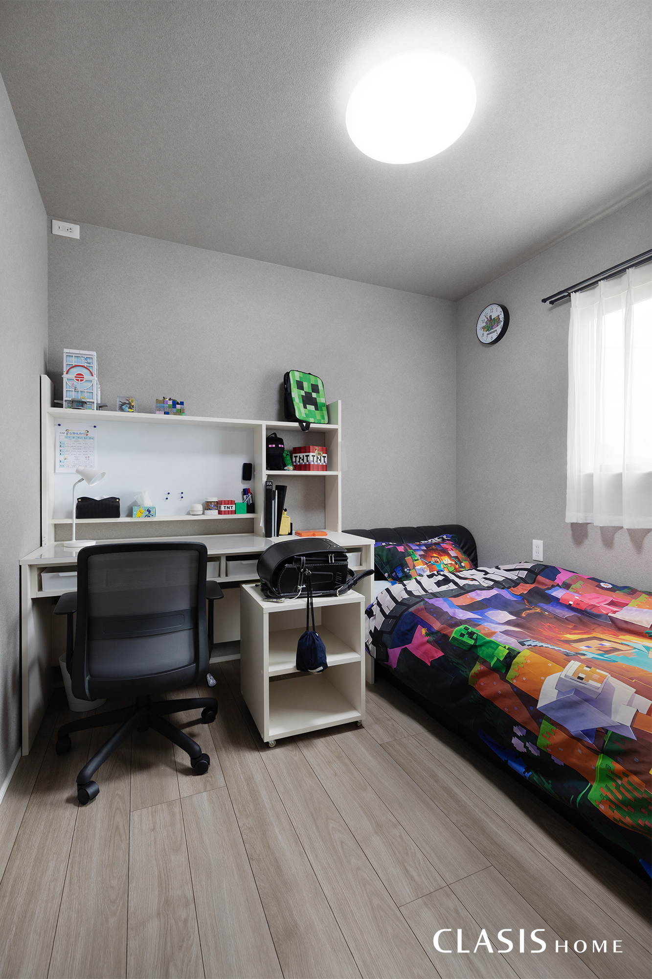 子ども部屋はお子様が好きなものを並べ、個性を育めるように、床材やクロスはシンプルなものをセレクトしました。