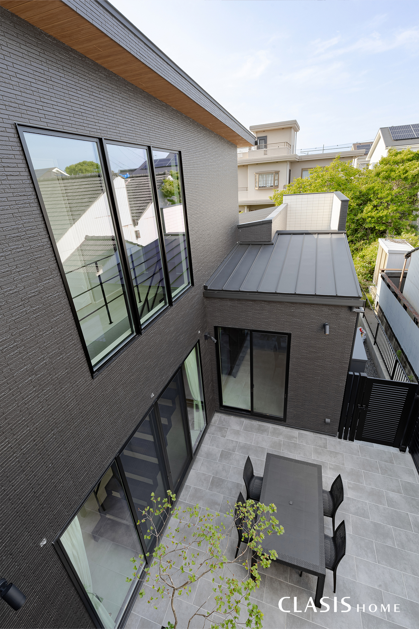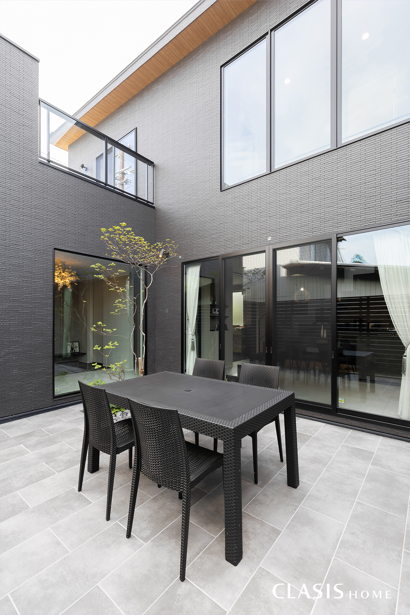2階バルコニーからも中庭の様子が窺えます。違う場所にいても家族の姿が目に入り、どこにいても一緒に過ごせる間取りを計画しました。
